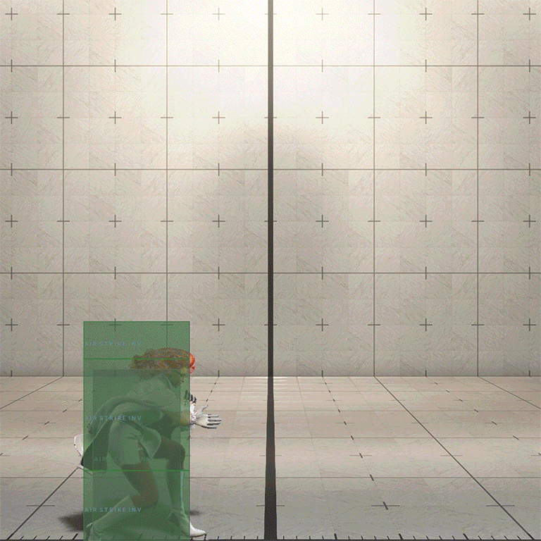 Invincible against mid-air projectiles and strikes with mid-air hitboxes from frames 1 - 9Considered airborne from frames 9 - 31Can transition into Feint on frame 6Can transition into follow-up attack on frame 17 on either hit or block